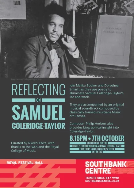 Biographical lecture on Samuel Coleridge-Taylor, at the Southbank Centre, 7 October 2014, as part of an event in the London Literature Festival.