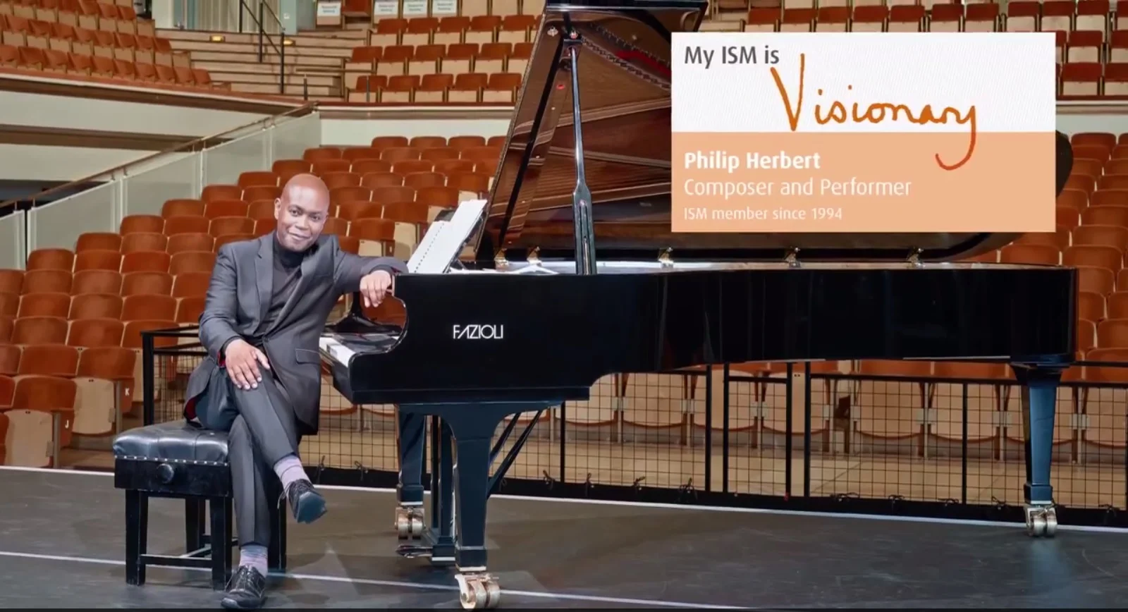 Appeared as part of the Incorporated Society of Musicians (ISM) #myISMis campaign, having been a member of the society for over 20 years. See the video here.